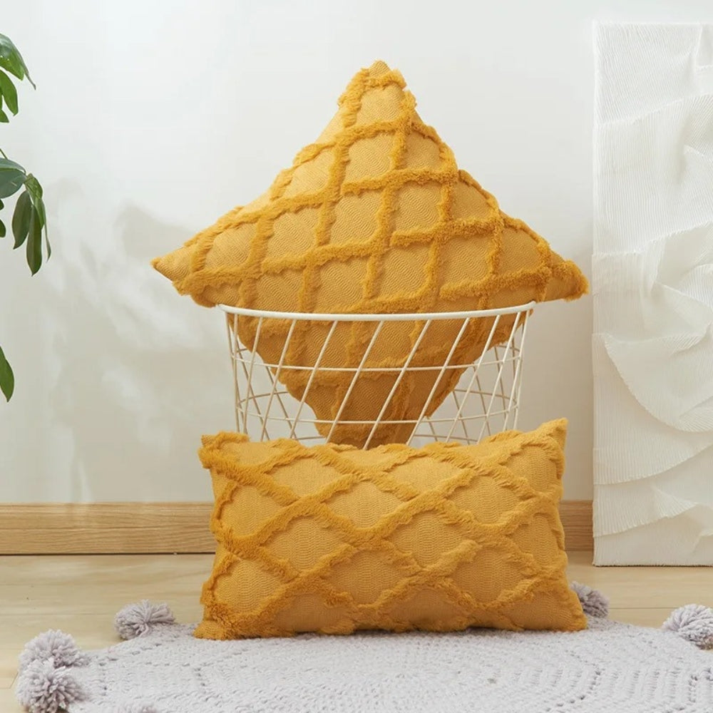 Add playful character and everyday elegance to your living space with the Lunel Velvet Pillow Cushion Cover Set. Featuring a soft-touch velvet texture and boho geometric pattern, these cushion covers instantly warm up sofas, chairs or beds. Their woven detail and modern hues bring a cozy yet refined feel to any room.