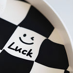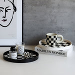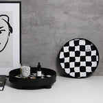 Keep your space tidy and stylish with this round storage tray featuring a striking checkerboard design. Its black and white interlocking pattern blends simplicity and elegance. Both functional and decorative, this tray is designed for practicality, helping declutter your space while adding a touch of sophistication.