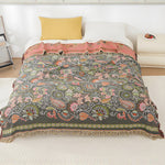The Autumn Leaf Boho Reversible Blanket brings warmth, color, and charm to your space. Crafted from breathable cotton gauze, this lightweight throw features a vibrant floral design with tasseled edges, perfect for layering over your couch or bed. Its reversible pattern gives you two looks in one, making it a versatile styling piece for every season. Designed for comfort, beauty, and effortless care.