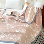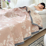 Wrap your bed in charm with the Flouriva Pink Rose Cotton Blanket. Crafted from breathable triple-layered cotton gauze, this soft blanket features a delicate rose pattern that brings a gentle, feminine touch to your room.