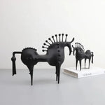 • Abstract horse sculpture with a sleek black finish