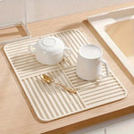 The ridged surface ensures dishes stay in place while allowing water to drain efficiently. Its absorbent silicone material keeps your counters dry and reduces the risk of slips or water puddles.