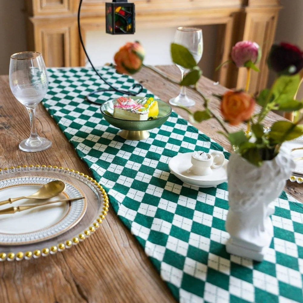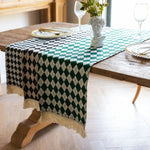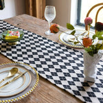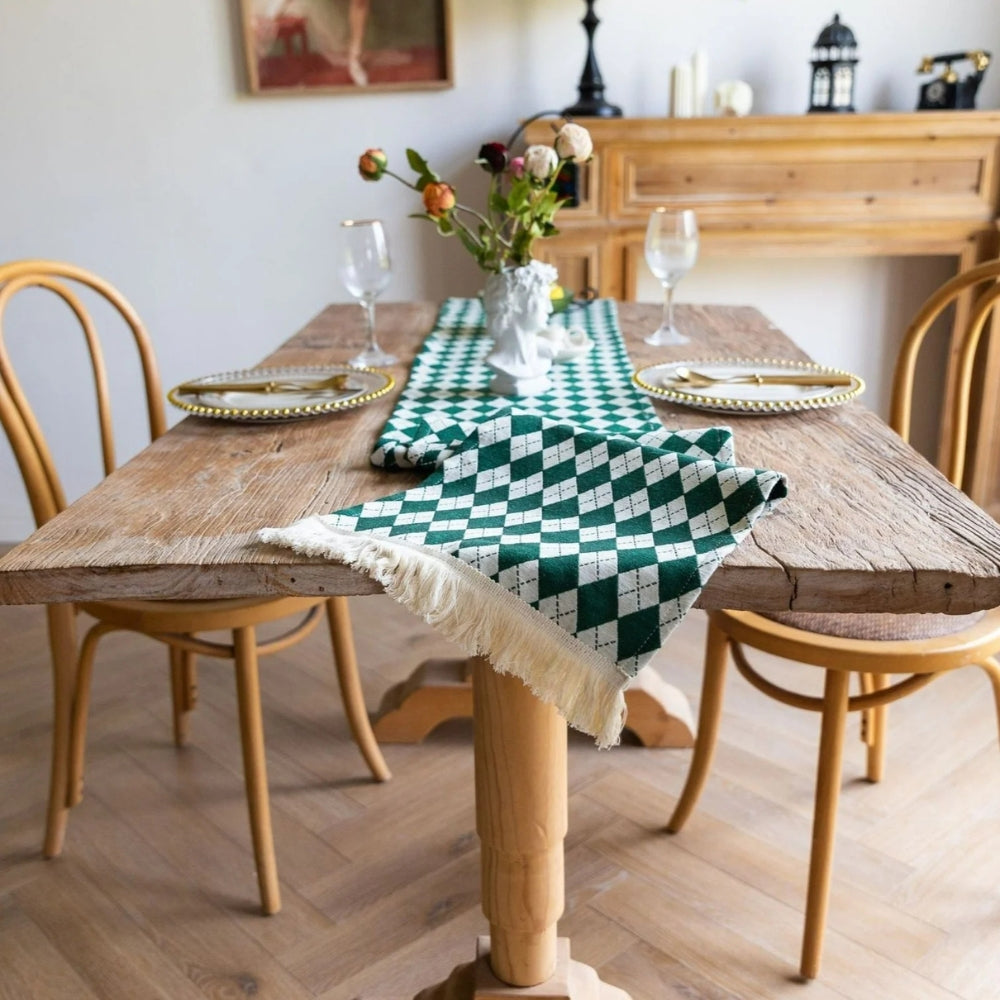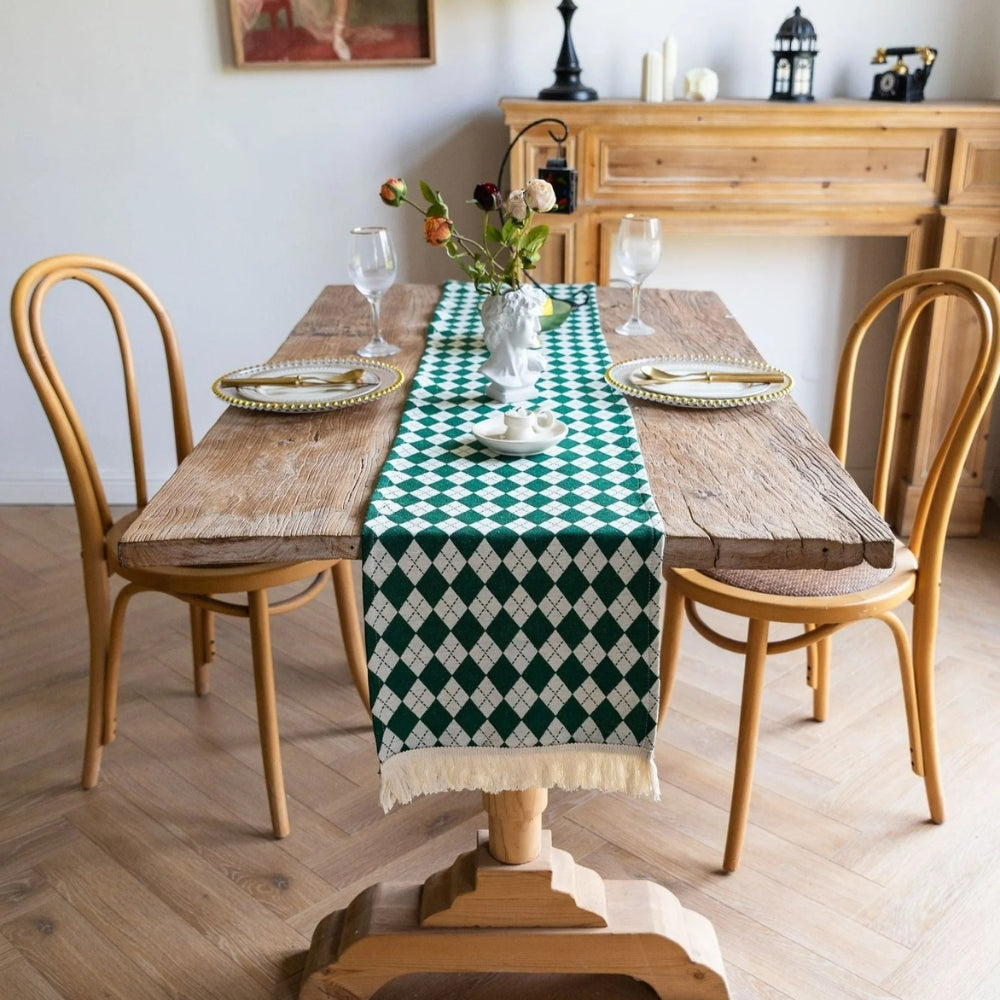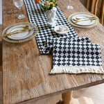 Bring instant character to your dining space with this bold checkered table runner. Designed with tasseled edges and a striking retro pattern, it transforms everyday meals into stylish occasions. Perfect for family dining or entertaining, it adds a refreshing, versatile touch.