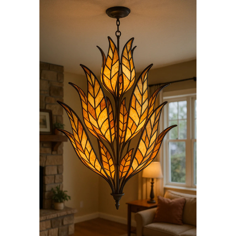 This Golden Leaf Glow Chandelier captures attention with its nature-inspired design that resembles cascading leaves. When lit, the golden tones reflect beautifully, filling the room with a radiant and inviting atmosphere. Suitable for dining areas, living rooms, or entryways, it serves as both a striking light source and decorative centerpiece.