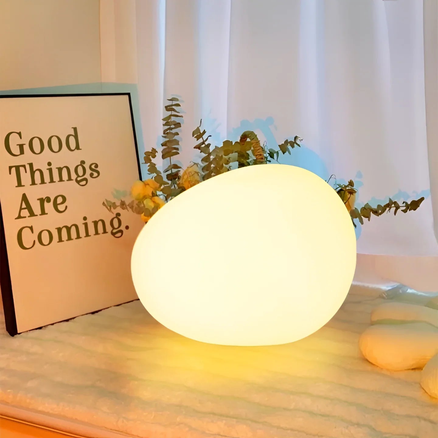 Bring a touch of nature indoors with this Scandinavian-inspired LED table lamp. Its pebble-shaped design adds an organic, calming accent while the adjustable three-color lighting lets you create just the right atmosphere. Ideal for bedrooms, living rooms, or dining areas, it’s a subtle statement piece that balances style and functionality.