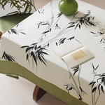 Transform your dining space with this serene bamboo-patterned tablecloth. The minimalist black and white design captures the essence of bamboo leaves, infusing your table with calming Asian-inspired aesthetics.