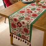Embroidered Floral Tassel Table Runner