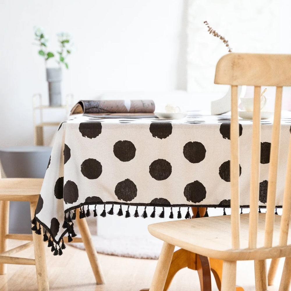 Bring warmth and charm to your table with the Polka Charm Tassel Table Cloth. Designed with playful dots and tassel edging, it sets a cheerful yet stylish mood.