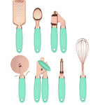 Upgrade your kitchen essentials with the 7-Piece Rose Gold Cooking Set, combining beauty and practicality in one stunning collection. Featuring rose gold stainless steel tools with easy-grip silicone handles, this set adds a touch of elegance to your cooking space.